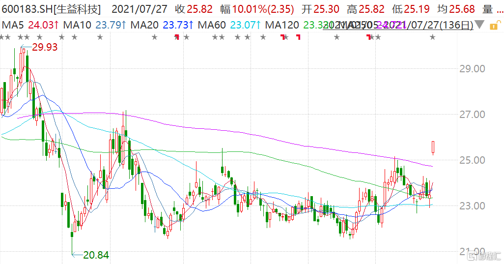 生益科技(600183.SH)封涨停板 Q2业绩超预期