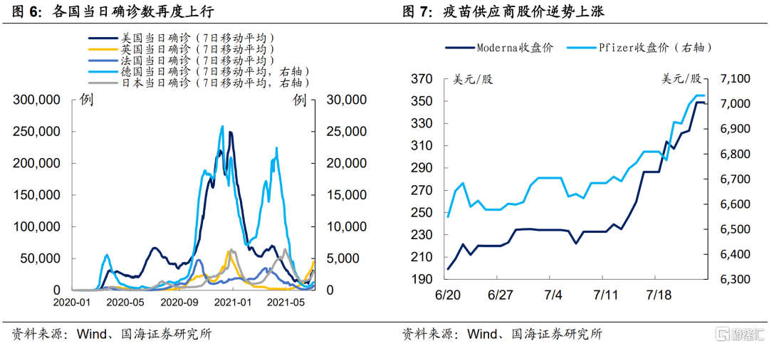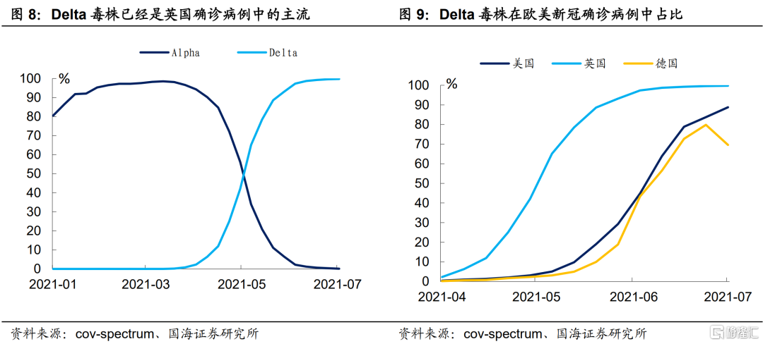 6月下旬以来,欧美当日确诊数在Delta毒株的散播下再次反弹,与两方面因素有关: