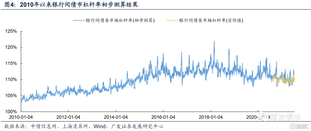 将我们测算的债券托管总额与待购回质押式回购余额,代入银行间债市杠杆率计算公式,可得2010年以来银行间债市杠杆率。