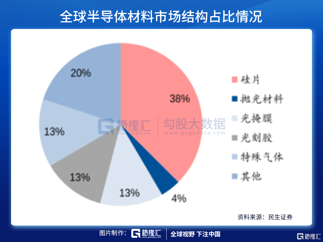 就市场规模来看,集中光刻胶分别是22-24亿美元的市场规模,其中半导体光刻胶22亿美元的市场规模约占整个半导体材料的12%,仅次于硅片和电子气体。