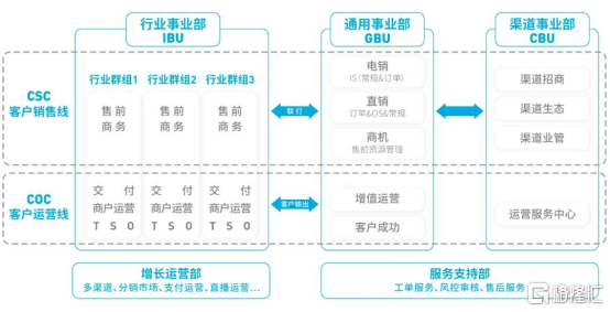 将原SCG-电商事业部升级为通用事业部(GBU),原SCG-渠道中心升级为渠道事业部(CBU),分别负责通用行业销售、增值运营和客户成功的职责,以及渠道及生态体系的建设和运营。此外,将原CDG-创新中心和运营中心的部分团队和职能合并升级为运营中心-增长运营部,聚焦流量生态、分销市场和直播运营等服务;将原SCG-客服中心调整至CDG-运营中心,更名为服务支持部。