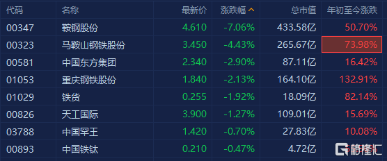 港股异动 | 钢铁股下挫 鞍钢股份(0347.HK)大跌7%