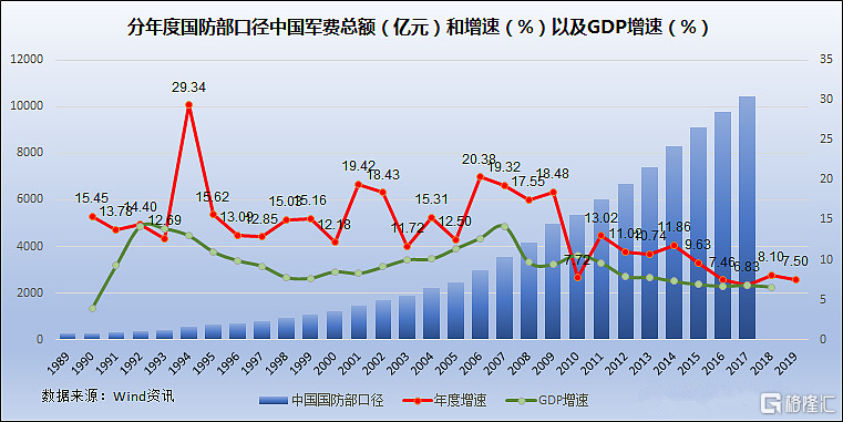 第一、军费可以长期保持高于GDP或者与之持平的增长速度,这也是军工行业成为少数可以实现持续稳定增长的行业的基础。