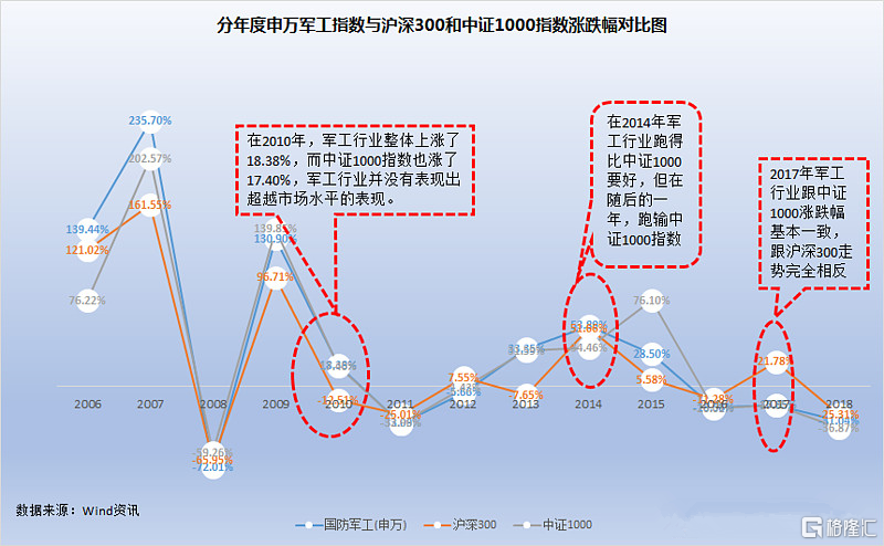 总体上来说,军工指数跟中证1000指数走势基本一致,从年度看,并没有走出属于自己行业的独立行情。