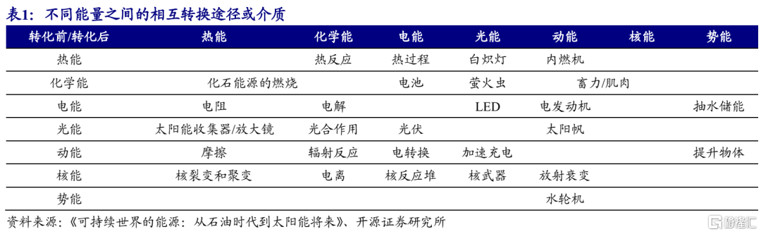 (1)能量和能源之间的区别。能量是物质做功的能力,能源是能量的载体,能量是虚拟物,而能源是实体。比如马作为一种畜力,其本身其实就是一种能源(生物质能):马通过摄入食物储存化学能(能量),它可以随时将化学能转化为动能(能量);而火车/汽车由于本身不能储存能量,因此它们都只能算是能量转换的介质,真正的能量来自于石化能源:蒸汽机中的煤炭和内燃机中的石油,石化能源通过燃烧从化学能转化为热能,而热能通过蒸汽机或内燃机推动火车/汽车产生动能。