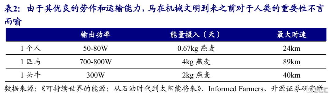 汽车发动机功率的计量中,“马力”是一个通用的计量单位,其实就是一匹马的输出功率。在上一次能源革命前,马为代表的畜力曾是交替运输的主要能源。