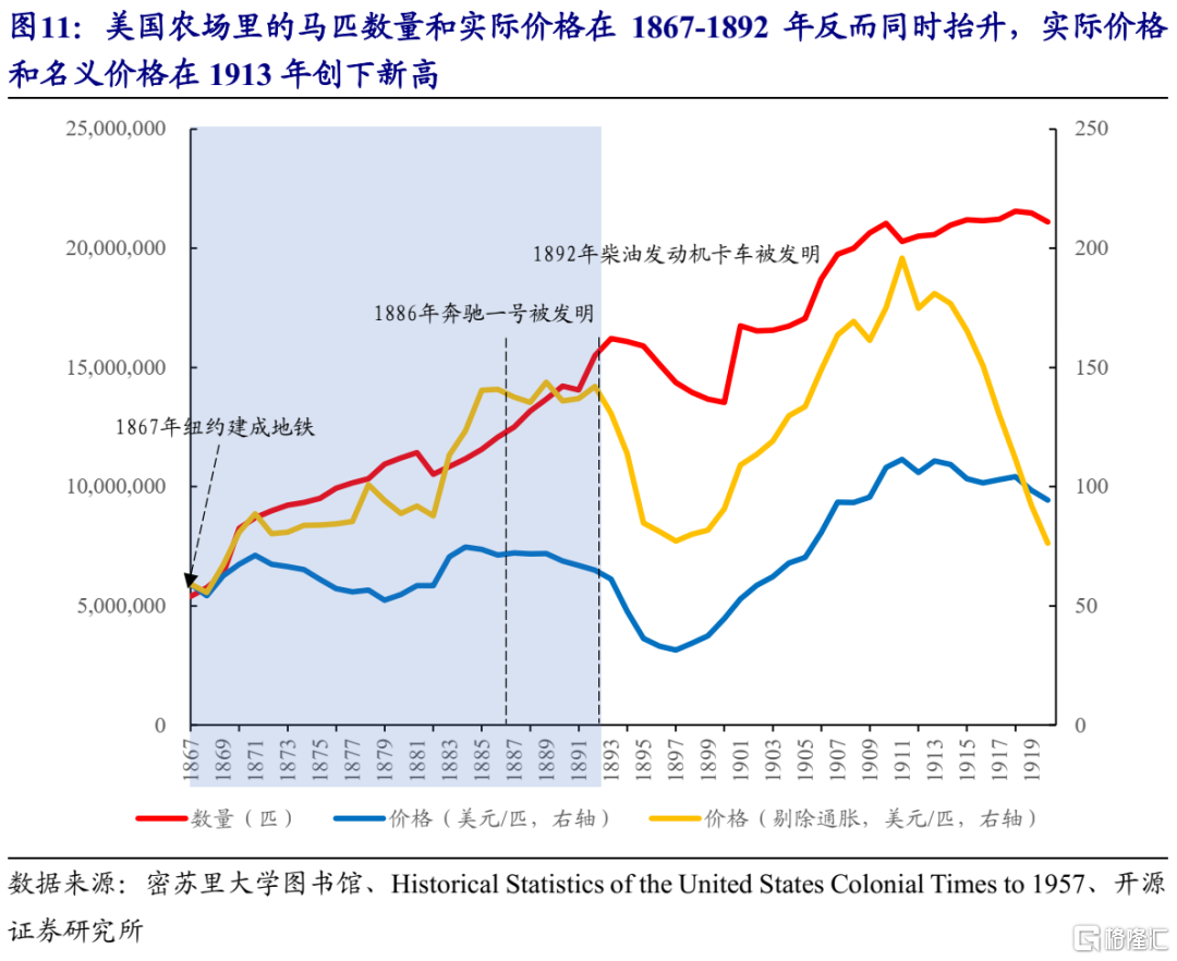 2.2 火车/汽车发明初期,马匹反而量价齐升