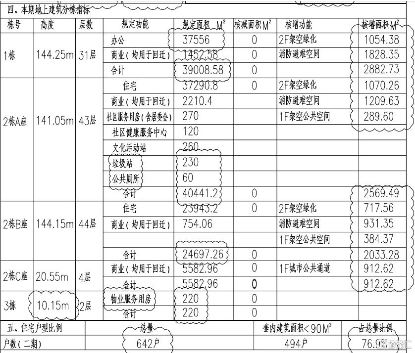 目前从流传出来的户型图来看,面积段大约在42-90平、复试120-140平,并且面积小于90平的户数有494户,占了绝大部分。