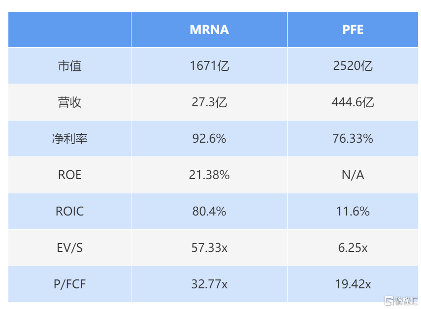 我们之前把 MRNA 和 PFE 进行财务对比:两家疫苗公司对比