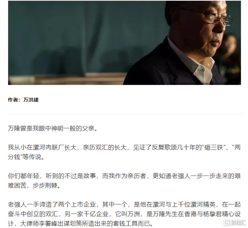 但是,随着昨晚万洪建一篇饱蘸血泪的雄文出炉,万隆的底裤被这位好大儿掀了个底朝天。我们知道,双汇的狗血剧没这么简单了。