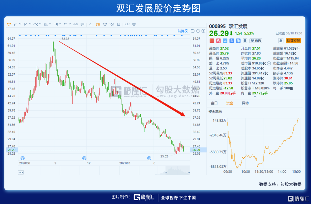如今,牧原的市值已是万洲国际的三倍,双汇发展的股价也在一年之内暴跌60%。曾几何时,双汇还是全国第一肉类品牌,然而试看今日之域中,已非双汇之天下。