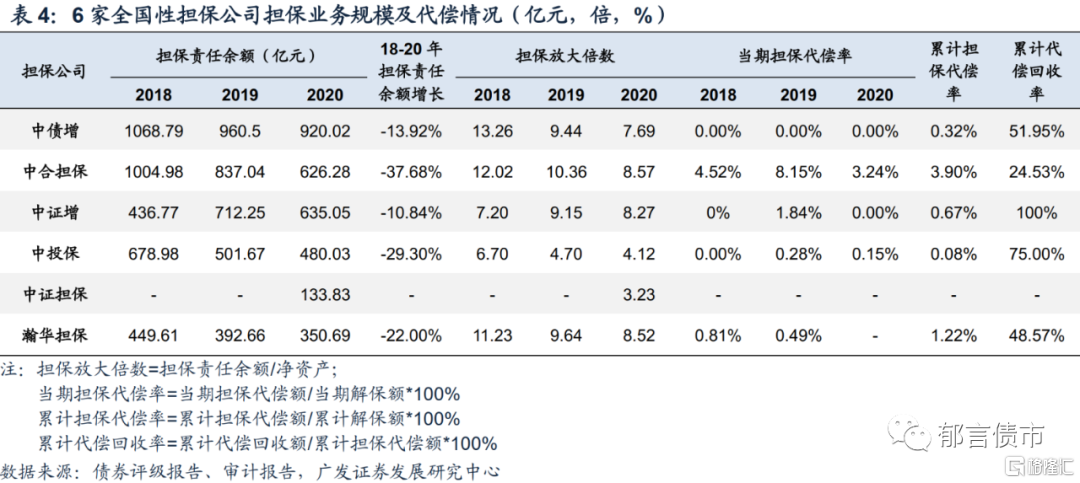3. 全国性担保公司2020年均收缩担保业务规模