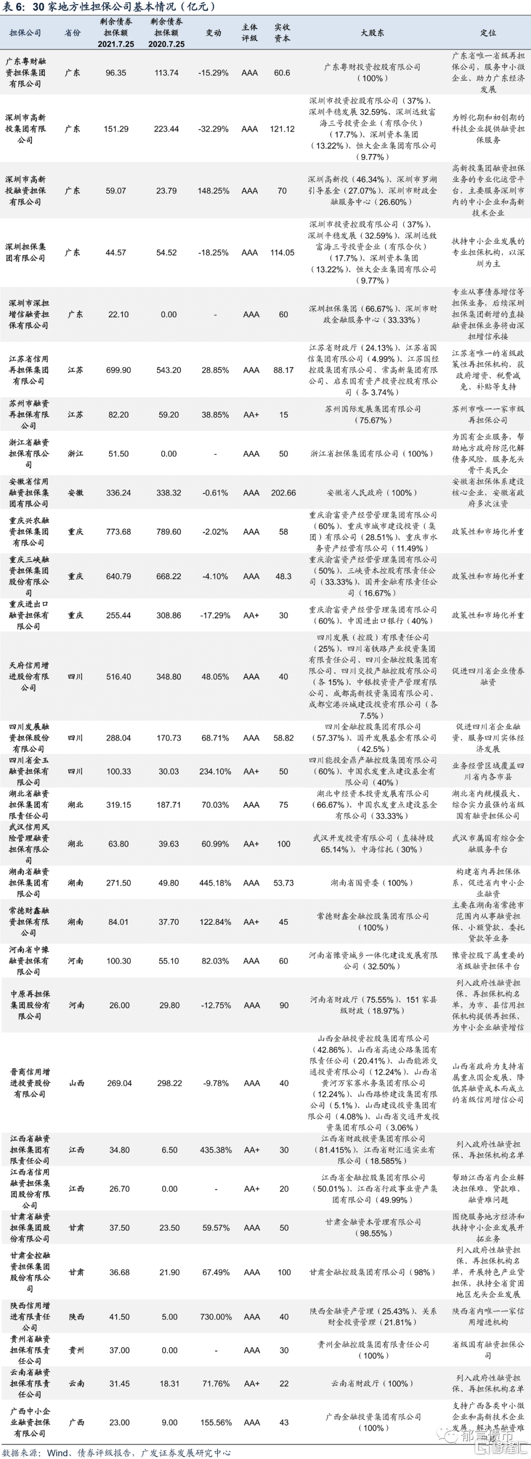 在此背景下,各省新设和重组的融资担保机构数量增加,参与债券担保的地方性担保公司也有所增多,包括浙江担保、甘肃金控担保、深圳高新投担保、深担增信、陕西信增、江西担保等。