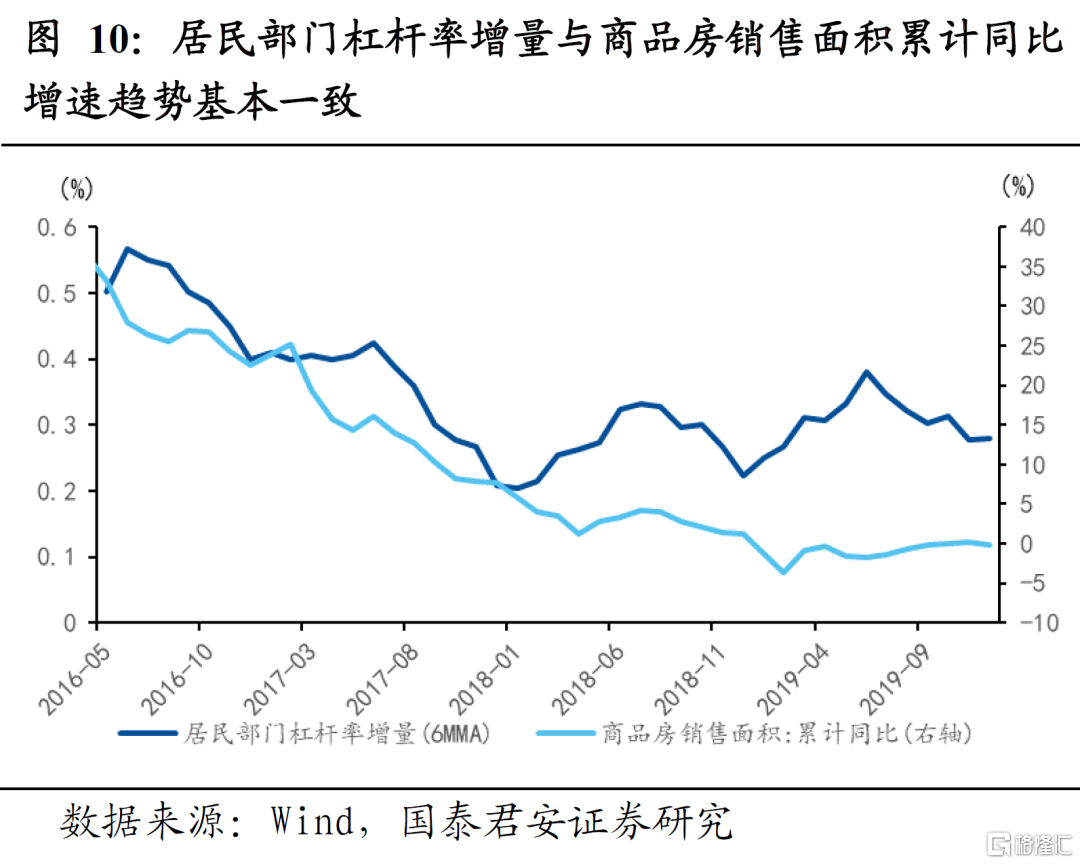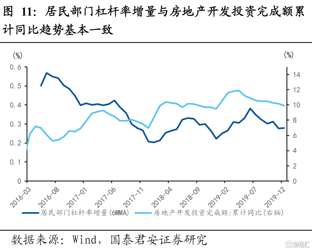 1)居民部门杠杆率变化与房地产销售和投资基本同步;