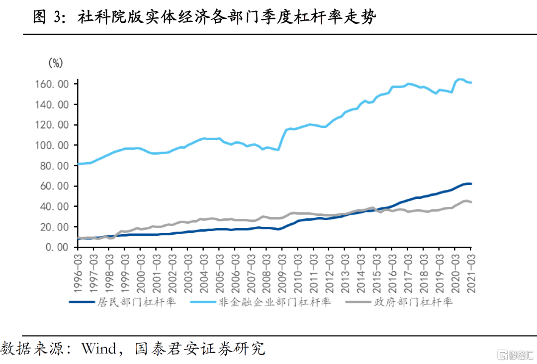 我们认为2021年全年实体经济宏观杠杆率较2020年底下降3-5个百分点,结构上将呈现“非金融企业降杠杆、政府加杠杆”的特征,居民部门杠杆率则稳中有降。下半年总杠杆率水平在三部门变化相互抵消的作用下大概率维持稳定。具体来看: