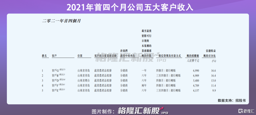 另一方面,从下游产业链来看,按客户收益划分,来自五大客户收益贡献了公司大部分营收,且还有一定上涨趋势,从截至2020年财年的56.1%上升至截至2021年首四个月的67.3%,可以推测,如果未来公司向其中任何一方减少或终止销售,或将对其业务收入产生不利影响。