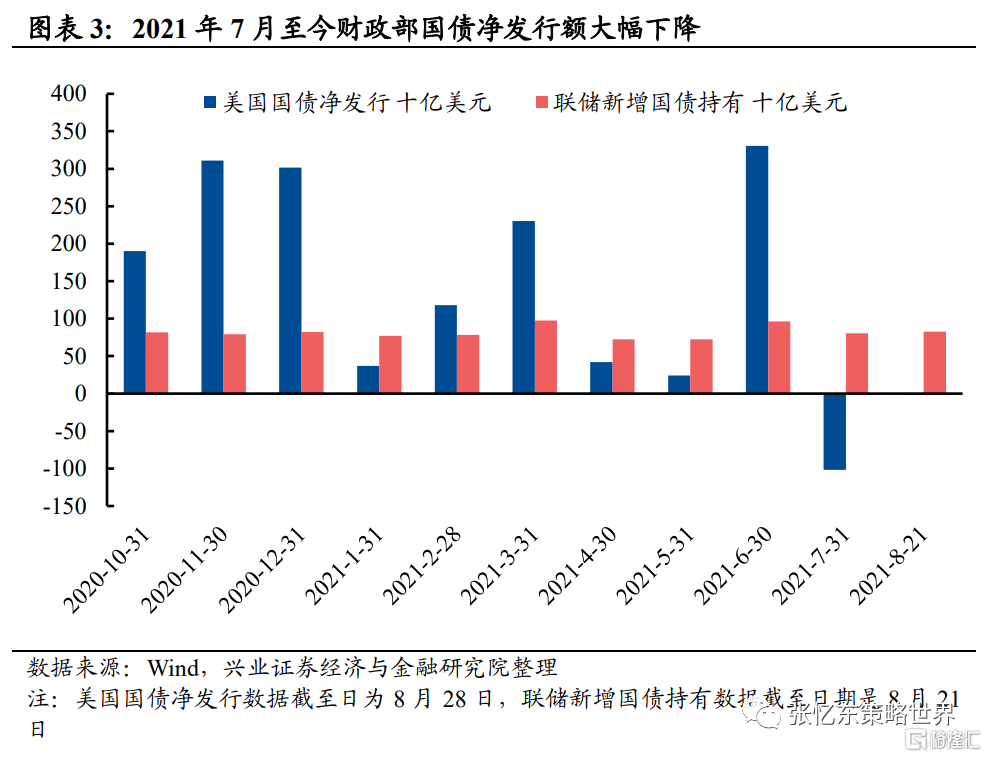 往后看,9月下旬是需要关注的重要时间点:1)9月22日联储会议是否会释放Taper的前瞻指引;2)9月10日参议院休假结束,美国债务上限问题有待解决;3)10月1日,美国新财年预算将可以动用预算调整程序推动立法,拜登3.5万亿美元刺激计划是否会推进。当前是政府债务上限约束下,美国国债发行的真空期,而联储持续买债,导致美债利率处于低位。9月底可能迎来反转。