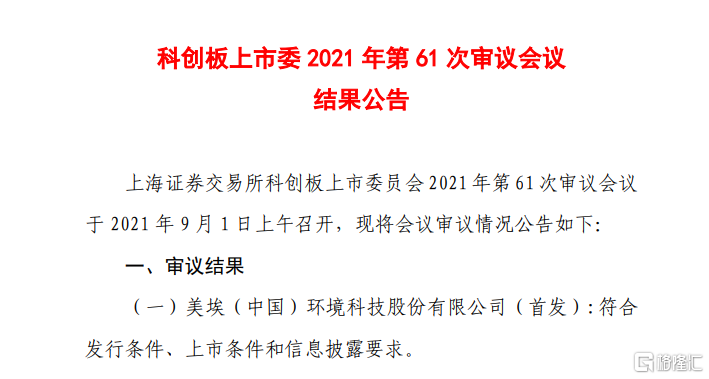 近期上交所公告显示,科创板上市委定于9月1日审议美埃(中国)环境科技股份有限公司(以下简称“美埃科技”)的首发申请,目前公告显示已过会。