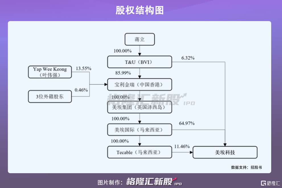 招股书显示,公司实际控制人系境内自然人蒋立,蒋立通过其100%持股的公司 T&U 直接或间接控制公司合计 82.75%股份。
