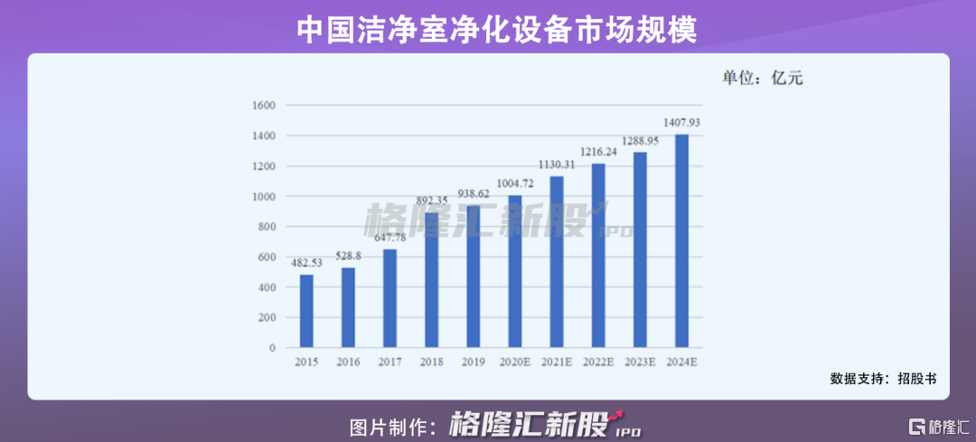 受益于国内持续加强空气质量优化的相关政策支持,空气过滤器行业市场规模迅速增加;且中国洁净室设备市场规模预计到2024年超过1400亿元。