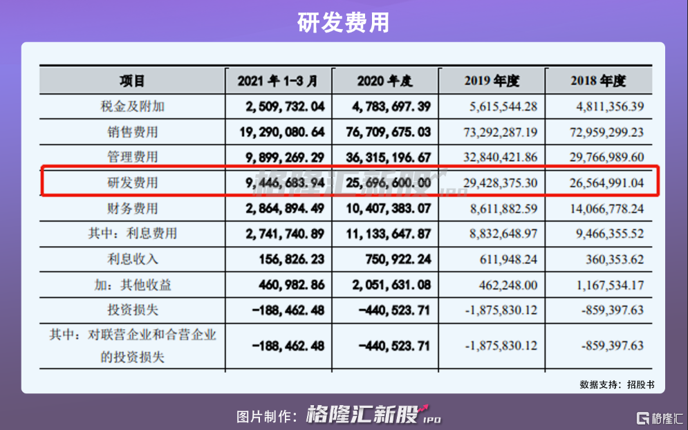 报告期内,公司的研发费用分别为2656.50万元、2942.84万元、2569.66万元、944.67万元,占同期公司营业收入的比例分别为4.15%、3.71%、2.85%、4.46%,其中,2020年研发费用占营业收入比例下降主要系疫情所致。