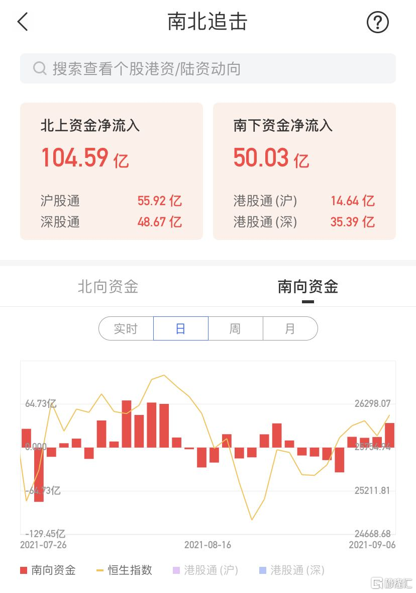 今日南向资金净流入50.03亿港元,港股通(沪)净流入14.64亿港元,港股通(深)净流入35.39亿港元。