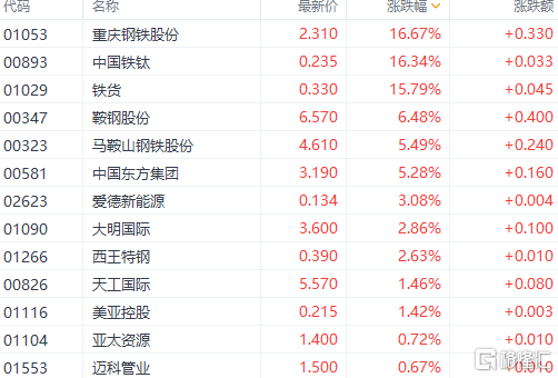 钢铁股集体爆发。重庆钢铁股份、中国铁钛涨超16%,铁货涨超15%,鞍钢股份、马鞍山钢铁股份跟涨。国泰君安表示,钢铁行业 “金九”传统需求旺季逐步启动,板块年内第二波行情正当时。从各上市钢企发布的21年中报业绩来看,其上半年业绩普遍超市场预期,钢铁板块业绩优、估值低,竞争格局持续改善。随着行业“金九银十”需求旺季逐步深入且国内疫情逐渐好转,后半年钢材需求有望持续复苏,叠加供给下降趋势,预期下半年钢价将持续高位震荡运行。