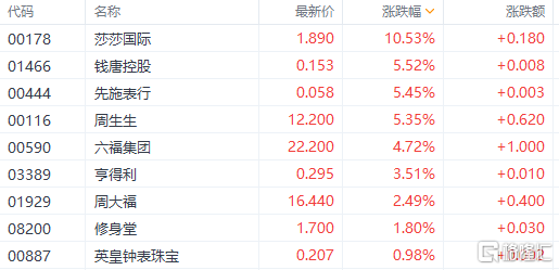 香港零售股集体上扬。莎莎国际大涨超10%,周生生大涨5%,六福集团、周大福等跟涨。消息面上,9月15日港府将推出“来港易”,内地和澳门的非香港居民经深圳湾口岸及港珠澳大桥口岸来港,可以免除14天隔离。深圳湾口岸及港珠澳大桥口岸每日“来港易”名额各1000个,总共2000名额。