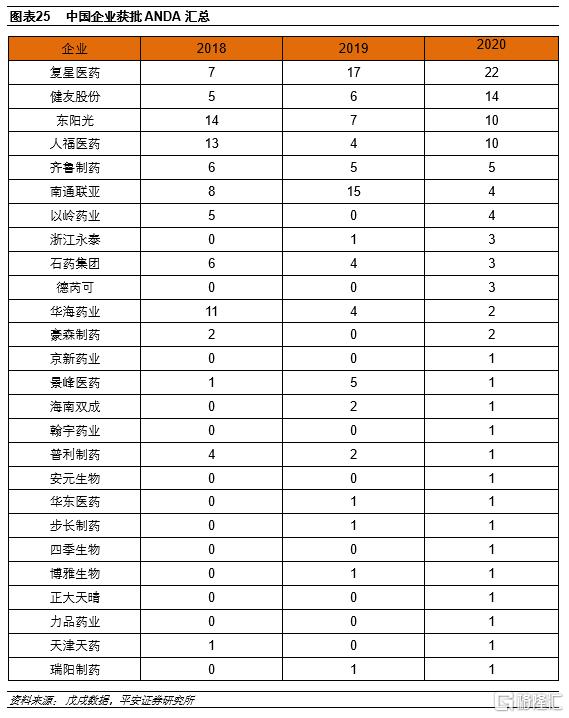从近三年美国ANDA获批情况来看,复星医药、健友股份、东阳光、人福医药、齐鲁制药、南通联亚等企业总数靠前。