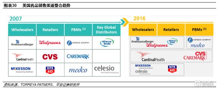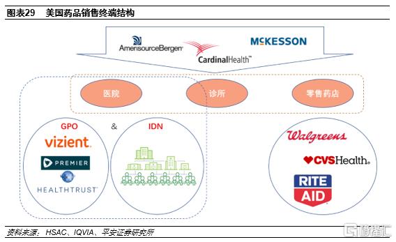 美国药品销售体系与我国差异明显。从药品流通的角度看,参与者主要有制造商、分销商、零售商(零售药店、医院等)和患者;而从资金端来看,参与者板块PBM(Pharmacy benefit manager,即药品福利管理机构)、商业保险和公立保险(包括Medicare、Medicaid等)。我们认为与我国药品销售体系相比,美国有几点明显不同:1)美国实行彻底的医药分开,不像我国处方权被医院医生垄断,因此在美国零售药店是最重要的销售终端且集中度高;2)PBMs在药品销售体系中占有重要地位,因美国采用纯商业化的医药运作模式,PBM等第三方制衡力量在降低医药费用和维护医疗质量方面效果显著;3)从支付端来看,与我国以社会保险为主不同,美国以商业保险为主,其在医疗机构话语权更高且控费需求更强。熟悉美国药品销售体系对制剂出口企业来说至关重要。