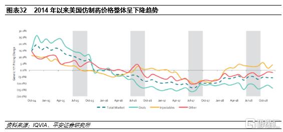 对美国市场仿制药来说成本是最大的优势。伴随着美国流通巨头的整合,其在产业链话语权持续提升,仿制药降价压力持续加大。根据IQVIA数据,2014年以来仿制药价格整体呈下降趋势,注射剂已成为延缓价格下降的关键因素。对仿制药来说,低成本是最大的竞争优势。