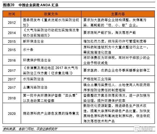 医药行业,尤其是原料药行业是典型的高污染行业,此前环保投入有限,存在“小散乱”的特点,严重制约了医药行业的健康发展。2012年以后,我国出台多项环保政策、措施,环保态势持续高压,加速医药行业中小企业出清。伴随着行业环保投入持续增加,工艺优化、清洁生产成为共识,也助推行业壁垒逐步提升。
