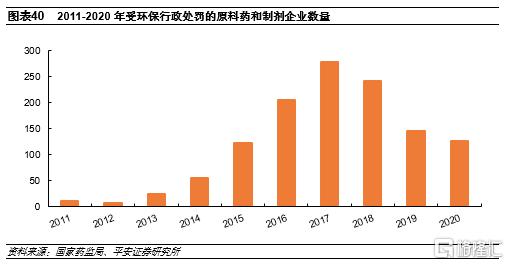 2017年以后受环保行政处罚的原料药和制剂企业数量持续下降。2020年我国受到环保行政处罚的原料药和制剂企业为127家,自2017年后持续下降。我们认为这主要得益于近几年环保持续高压,逼迫企业加大环保投入。环境友好是高端制造的内在要求,也是制剂出口稳定供应的前提。