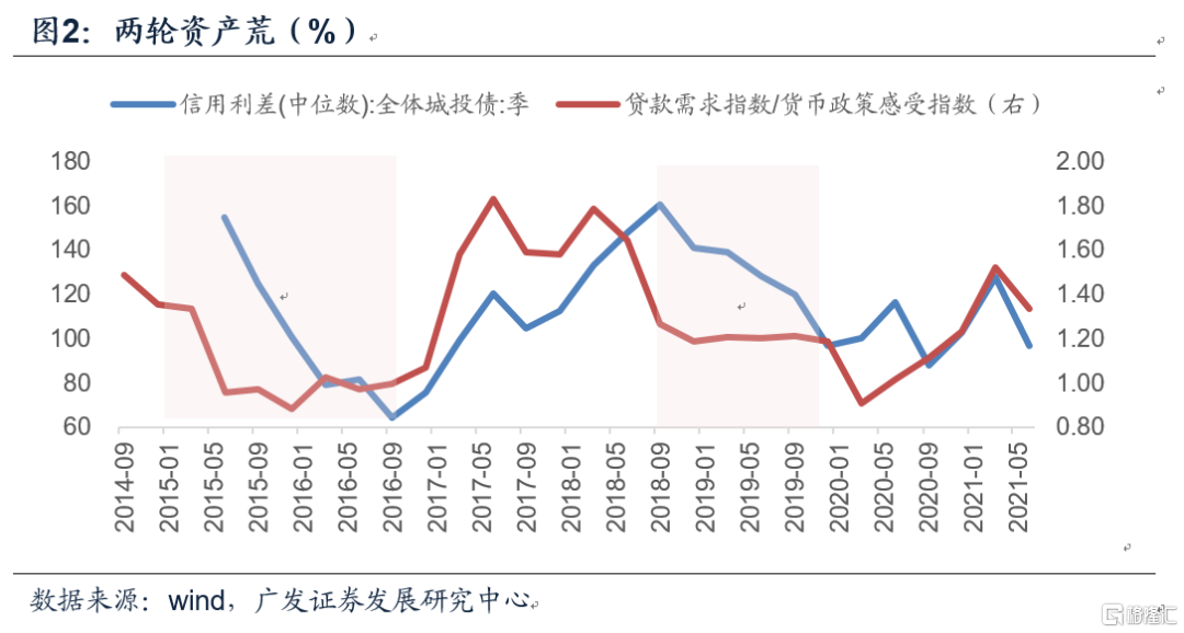 根据信用利差、贷款需求指数/货币政策感受指数等指标,我们发现2015年至今债券市场出现过两次比较明显的资产荒。