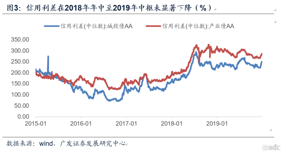 背后的原因在于:第一,信用违约事件发生的更加频繁,投资者对信用下沉更加审慎。根据wind统计数据,2016年全年大约54只债券违约,违约规模大约390亿元,2019年188只债券违约,违约规模大约1535亿元。