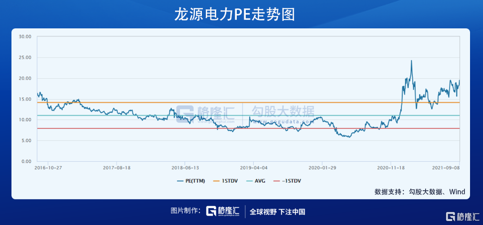 但我们也要清醒的认识到,尤其是风光发电赛道龙头经过中期维度的持续暴涨,估值已经明显溢价。比如风光装机量最大的龙源电力,当前PE19.51倍,远超过去5年平均的11倍估值。