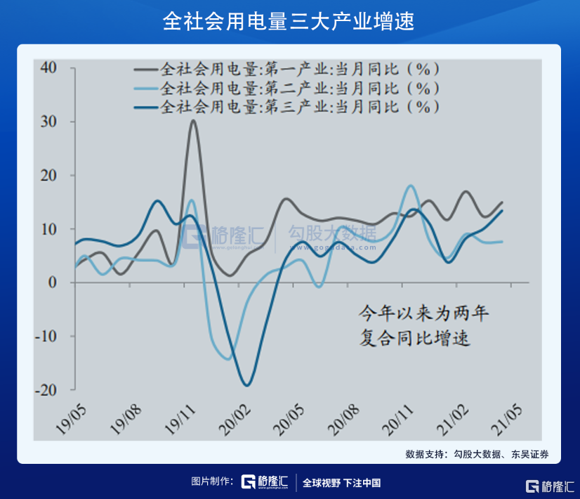 需求端,疫情后的经济复苏,结构上来看去年受疫情影响最严重的服务业用电量下滑幅度最大,今年以来的反弹也最强,第三产业的用电需求大增导致第二产业出现电力供需缺口。