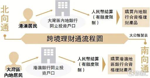 「北向通」指港澳地区居民通过在粤港澳大湾区内地银行开立投资专户,购买内地银行销售的合资格理财产品。「北向通」方面,香港投资者需在一家自选的香港合资格银行开立专属汇款账户,并在其内地伙伴银行开设专属投资账户。