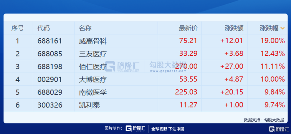 这次集采落地之后,二级市场解读为利空出尽是利好,港A骨科耗材股集体拉升。港股爱康医疗涨近28%,微创医疗涨超10%,A股威高骨科涨20%涨停,三友医疗、佰仁医疗均涨超10%。