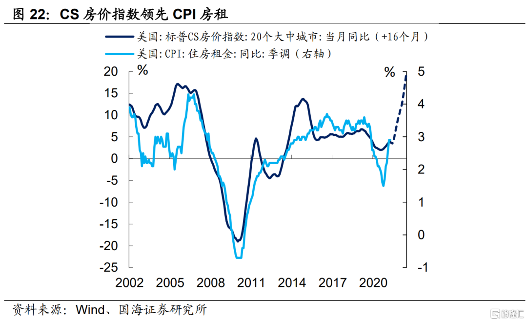 我们曾指出,房价向房租价格滞后传导的关系。根据6月份的CS房价指数显示,美国房价依旧在上升通道之中,与此同时房租价格也在持续悄无声息地上升,对CPI产生“持续输出”。