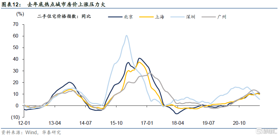 回到当下看,为何去年底以来地产调控密集出台、全方位升级?一是去年为应对疫情,货币政策宽松释放大量流动性,热点城市房价上涨压力大,房价预期容易形成自我反馈,有必要政策外力来打破。从去年年中起,因城施策调控升级已密集落地;二是住房和教育是两大民生问题,今年初炒作学区房挑战中央底线,4月政治局会议特别点名学区房;三是由于低基数等原因,今年稳增长压力小,是调结构、防风险等改革政策落地的窗口期。