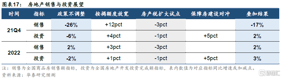 上述政策可能以不同组合出现,我们对基准情景和所有政策叠加后的结果预测如下: