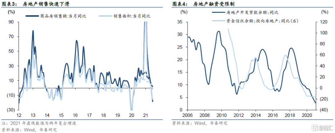 疫情以来,出口和地产曾是拉动我国经济的主要动力。然而,近期个别房企负面信息发酵、第二轮重点城市土拍冷淡、楼市销量快速下滑、部分房企打折卖房等,房地产行业景气度快速下行、供需两端压力凸显。由于房地产行业链条长、且连接着财政与金融,正成为基本面最大的风险源。本文我们重点讨论近期地产压力出现的原因、可能带来的次生风险、政策调整的空间与方向、以及房地产销售与投资在不同政策组合下的增长展望。