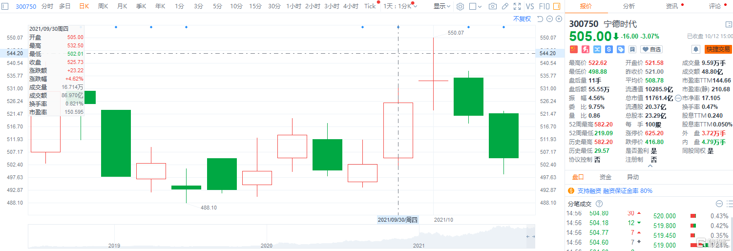 个股方面,宁德时代跌3.07%报505元,总市值11761.4亿元。宁德时代拟由控股子公司广东邦普及其控股子公司在湖北省宜昌市姚家港化工园田家河片区投资建设邦普一体化电池材料产业园项目,项目投资总金额不超过320亿元。