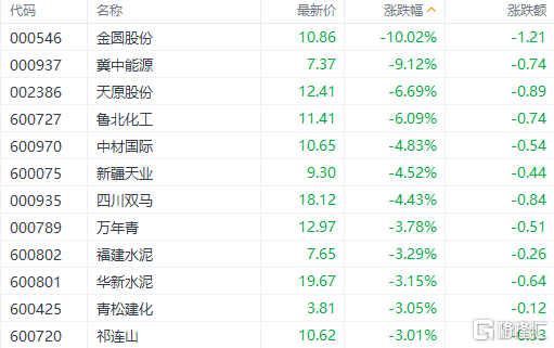 水泥股集体下跌。金圆股份跌停,冀中能源跌超9%,天原股份、鲁北化工跌超6%,新疆天业,中材国际、中材国际跌4%。日前,国家发展改革委印发《关于进一步深化燃煤发电上网电价市场化改革的通知》,并明确高耗能企业市场交易电价不受上浮20%限制。业内分析人士表示,鉴于当前煤炭成本高企,《通知》实施之后,工业企业用电价格有望明显上涨。同时,电能是水泥生产过程中主要能源之一。