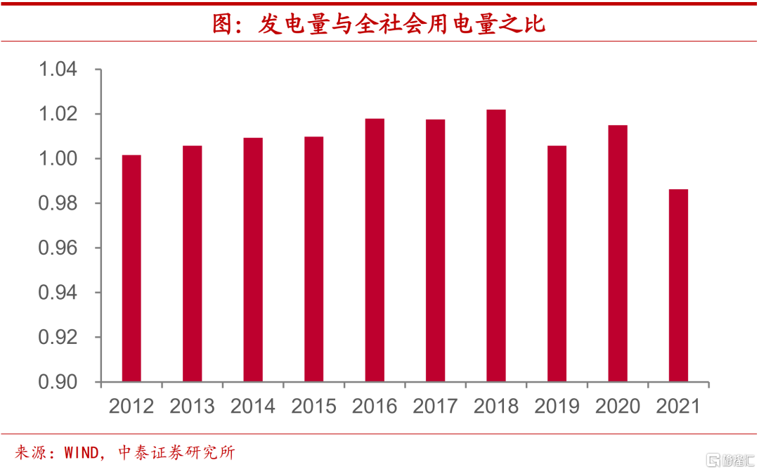 发电用电基本对应,没有提出过高要求。从发电量和用电量之间的关系上来看,2016年以来两者之间的比值稳定在1.0左右,而今年前七个月,发电量与全社会用电量之比略低于1.0的水平,这意味着在用电量相同的情况下,所需的发电量略有减少。由此可见,用电增长也并未对发电系统提出超出以往水平的过高要求。