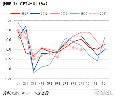 展望后期,四季度及明年上半年猪肉供给量总体仍在提升,猪肉价格预计仍偏低运行,此外2022年上半年猪肉价格同比仍面临高基数影响,使得猪肉价格对CPI仍将构成压制。2022年下半年,猪肉价格有望回升,但幅度有限,原因在于今年8月六部门印发的《关于促进生猪产业持续健康发展的意见》中提出“分省份明确能繁母猪存栏量和规模养猪场(户)保有量等核心指标,防止生猪产能大起大落”,因此这一轮生猪去产能幅度或许有限,食品CPI在明年下半年大幅上行的概率也较低。终端消费仍曲折恢复,多数工业消费品和服务并无短缺、竞争激烈,因此非食品CPI亦难超预期。但低基数因素会导致四季度及明年CPI同比中枢提升,预计仍将在2%以内。