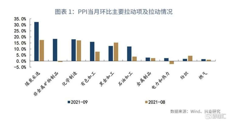 9月PPI同比录得10.7%,PPI同比增速高位继续超预期上行。煤炭、油气开采、燃料加工、钢铁、有色、化工等6大高耗能行业影响PPI上涨8.42个百分点,占总涨幅比例近80%。国内外供给约束的增强是工业品价格再度大幅上涨的主要推手。