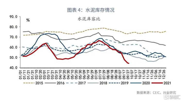 以水泥行业为例,自2021年9月能耗双控加强以来,多地进行了大规模错峰生产。在基建、地产投资增速并未提速的当下,水泥库存出现超季节性的大幅下行。水泥价格随之大幅上涨。与之类似的,多地在能耗双控政策下,限制电解铝企业的开工和生产,电解铝库存亦明显走弱,价格持续走高。