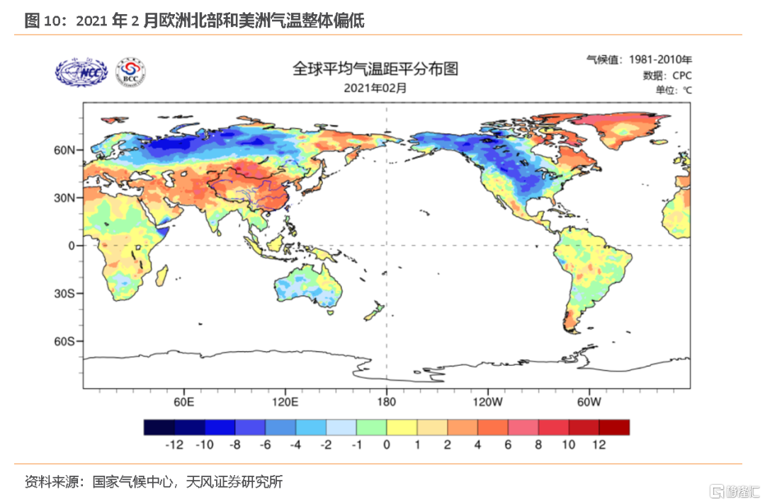 今年2月俄罗斯、欧洲北部和北美洲平均气温较往年明显偏低,美国得克萨斯州的寒潮造成了大规模停电,超过100名居民因此身亡。